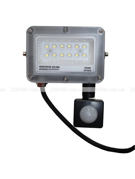 Прожектор LED 10W GOLDEN Slim 220V 1100Lm 6500K IP65 + ДР - призначений для освітлення запилених і вологих виробничих приміщень, сільськогосподарських будівель, гаражів, складів, можливе застосування для освітлення адміністративних і громадських приміщень. Призначений для роботи при 220В, 50Гц.