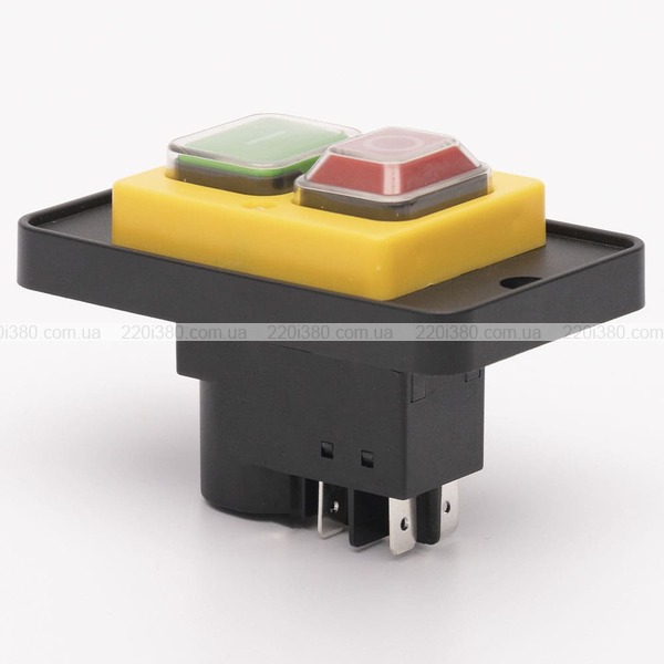 Пускова електромагнітна кнопка ESSB-121YC 4pin на панелі, жовта рамка