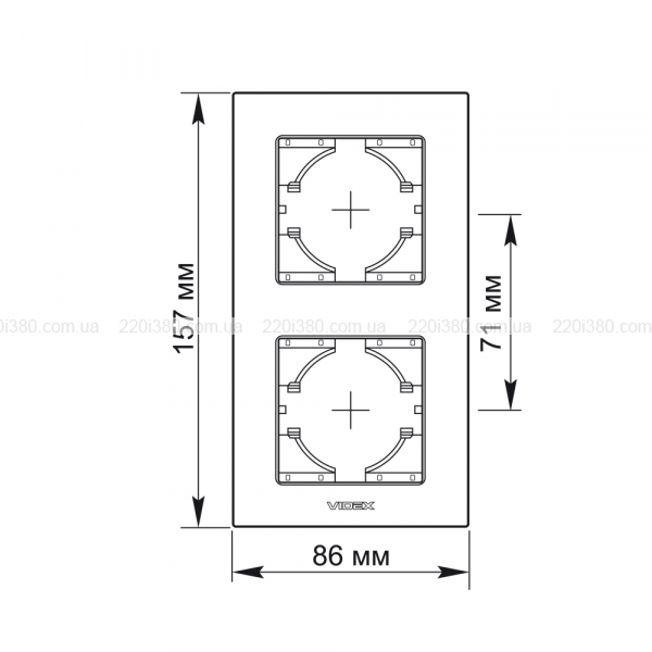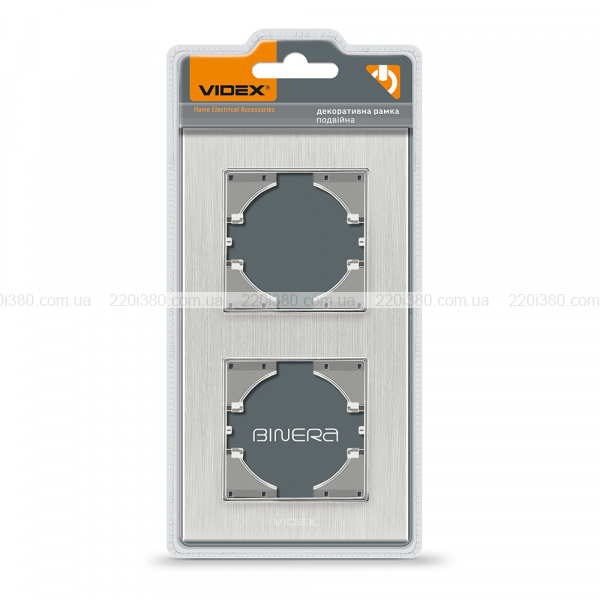 Рамка срібний алюміній на 2 місця вертикальна VIDEX BINERA