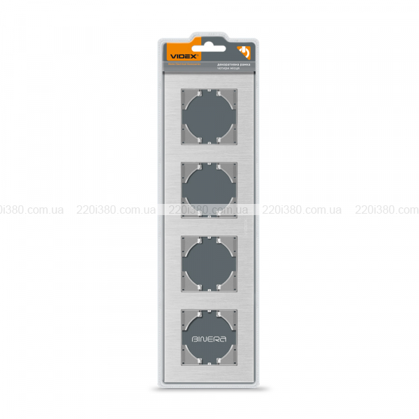 Рамка срібний алюміній на 4 місця горизонтальна VIDEX BINERA
