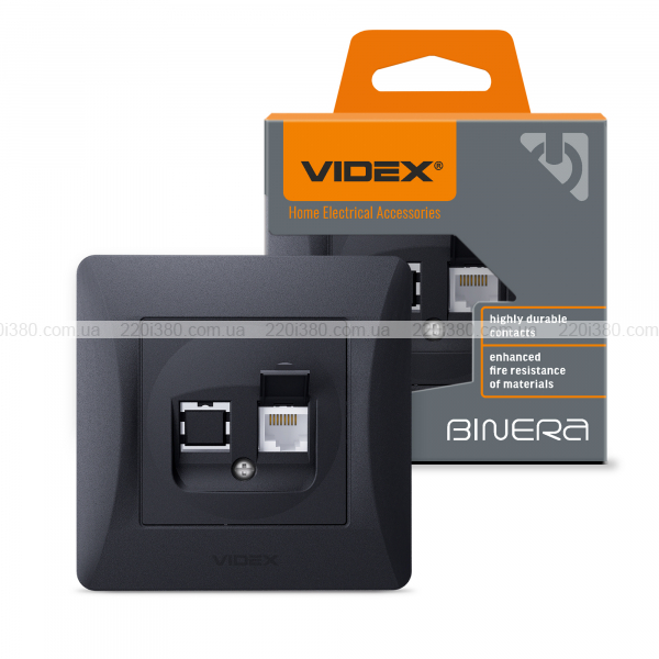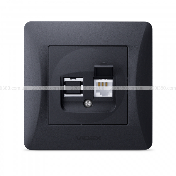 Розетка CAT6 одинарна комп'ютерна чорний графіт VIDEX BINERA