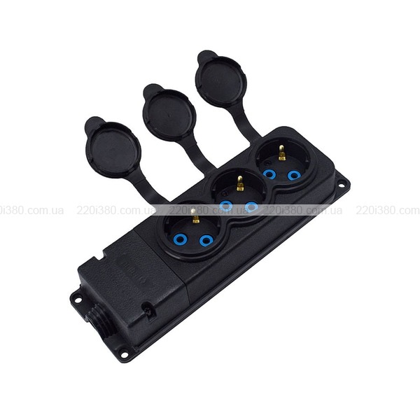 Розетка каучукова тримісна стаціонарна 3KMP 2Р+РЕ 16А IP44 чорна