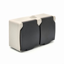 Розетка накладна вологозахищена двомісна з з/к і кришками T-proof cірий TAKEL
