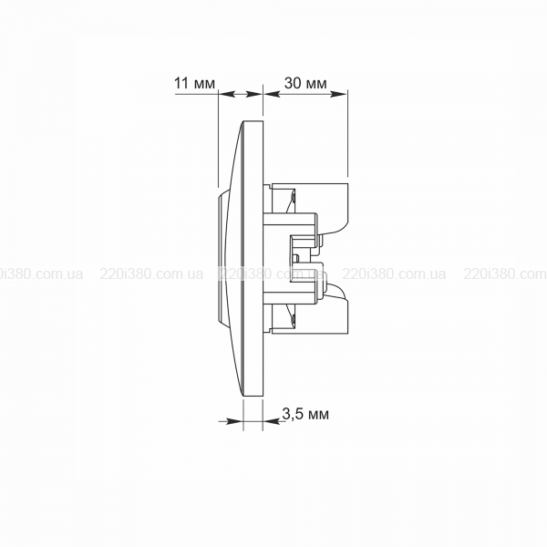 Матеріали: Поликарбонат, полиамид (монтажная часть), фосфористая бронза (материал контактов)