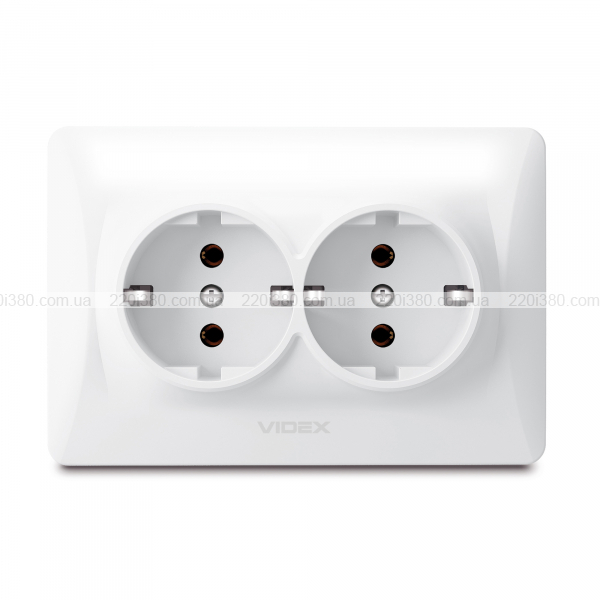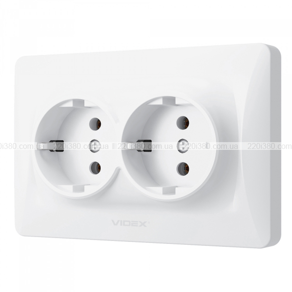 Розетка подвійна із заземленням біла VIDEX BINERA
