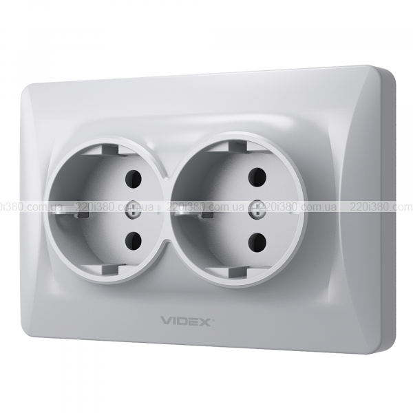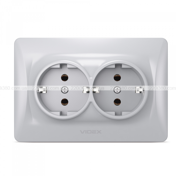 Розетка подвійна із заземленням срібний шовк VIDEX BINERA