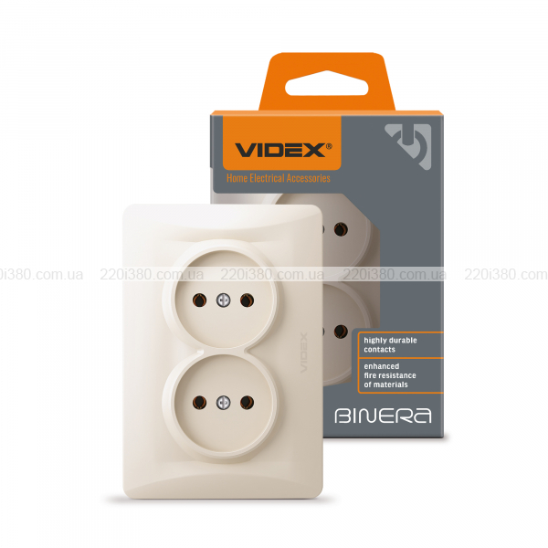 Розетка подвійна кремова VIDEX BINERA