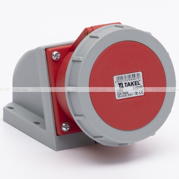 Розетка стаціонарна зовнішня 1252 32А 380В 3Р+N+Е IP67 Argent TAKEL