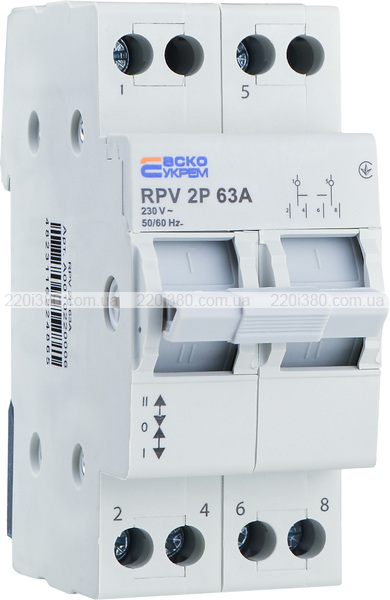 Ручний перемикач вводу (І-0-ІІ) RPV 2P 63A АСКО
