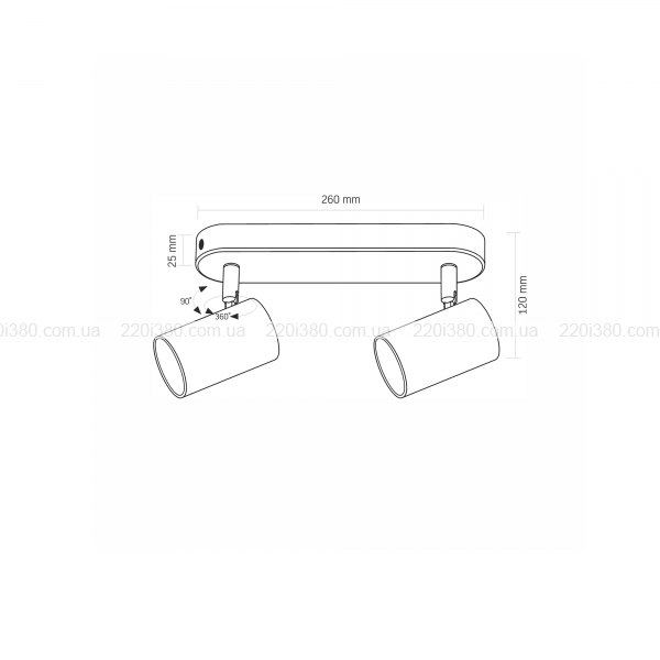 Світильник VIDEX під лампу 2xGU10 накладний поворотний чорний VL-SPF05B-BPB