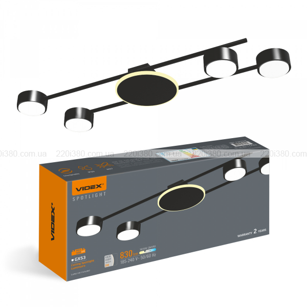 Світильник VIDEX під лампу 4xGX53 накладний з підсвіткою чорний VL-SPF21B-BB