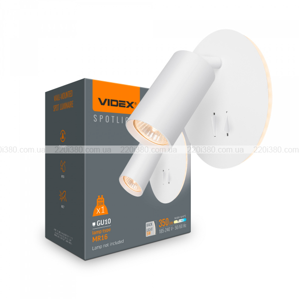 Світильник VIDEX під лампу GU10 настінний з підсвіткою та кнопкою білий (VL-SPF24E-W)