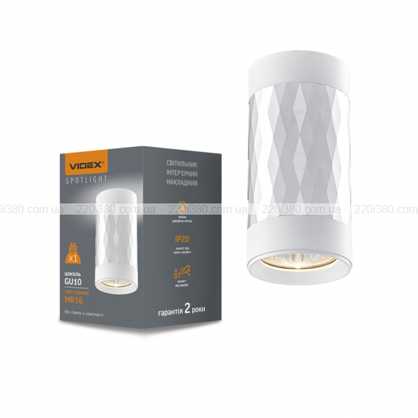 Світильник VIDEX під лампу GU10 SPF03A накладний білий + срібляста призма