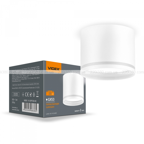 Стельовий точковий світильник під лампу GX53 VIDEX SPF35A – сучасне рішення для освітлення будь якого інтер’єру. Для роботи цих моделей світильника потрібна світлодіодна лампочка з цоколем GX53 і максимальною потужністю до 30Вт. Використовуються як для основного, так і для акцентного освітлення, зокрема для інтер'єрної підсвітки житлових, адміністративних та торговельних приміщень, кафе, ресторанів, готелів тощо. Сучасний дизайн та компактні розміри роблять їх універсальними. Кріпиться до будь-якої горизонтальної поверхні, як правило, до стелі, випромінюючи світло вниз. Використовуються виключно в сухих приміщеннях, так як мають клас захисту від пилу та вологи IP20. Не містить шкідливих речовин. Після монтажу не вимагає обслуговування протягом всього періоду експлуатації.