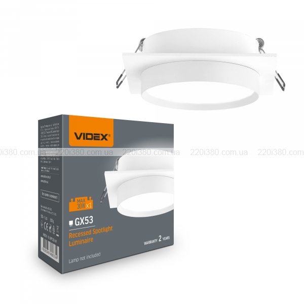 Стельовий точковий світильник під лампу GX53 VIDEX SPF33S – сучасне рішення для освітлення будь якого інтер’єру. Для роботи цих моделей світильника потрібна світлодіодна лампочка з цоколем GX53 і максимальною потужністю до 30Вт. Використовуються як для основного, так і для акцентного освітлення, зокрема для інтер'єрної підсвітки житлових, адміністративних та торговельних приміщень, кафе, ресторанів, готелів тощо. Сучасний дизайн та компактні розміри роблять їх універсальними. Кріпиться вбудованим способом (врізний) до будь-якої горизонтальної поверхні, як правило, до стелі, випромінюючи світло вниз. Використовуються виключно в приміщеннях, так як мають клас захисту від пилу та вологи IP20. Не містить шкідливих речовин. Після монтажу не вимагає обслуговування протягом всього періоду експлуатації. Корпус виконаний з алюмінію, що робить його не схильним до корозії на відміну від більш дешевих аналогів.