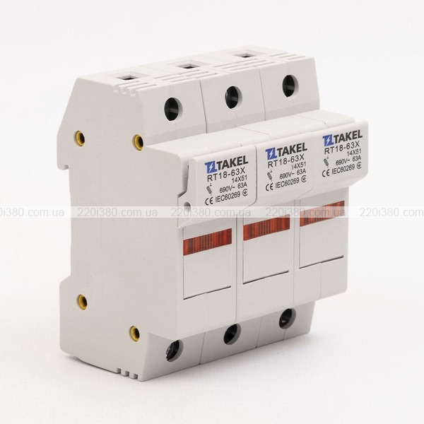 Тримач плавкого запобіжника RT18-63X 3Р 63А типорозмір 14х51 TAKEL