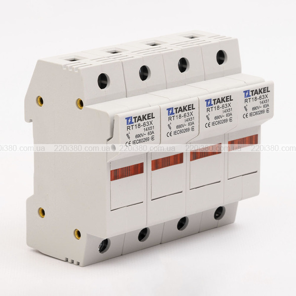 Тримач плавкого запобіжника RT18-63X 4Р 63А типорозмір 14х51 TAKEL
