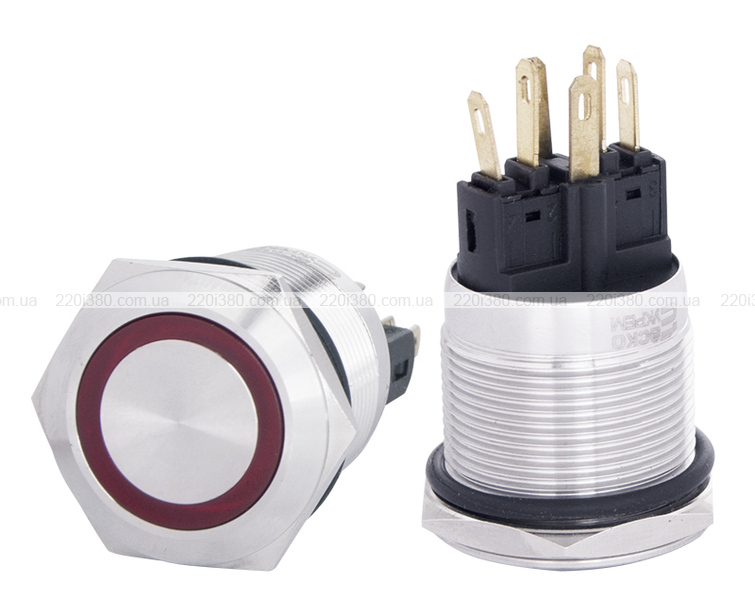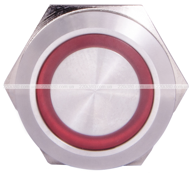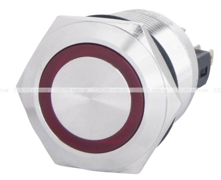 TYJ 22-271 Кнопка металева пласка з підсвічуванням, 1NO+1NC, червона 220V.