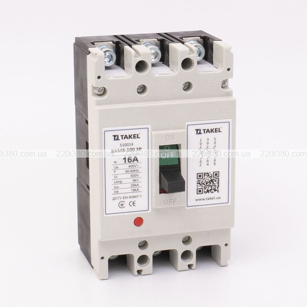 Вимикач автоматичний силовий ВАМ8-100 3Р 16А TAKEL