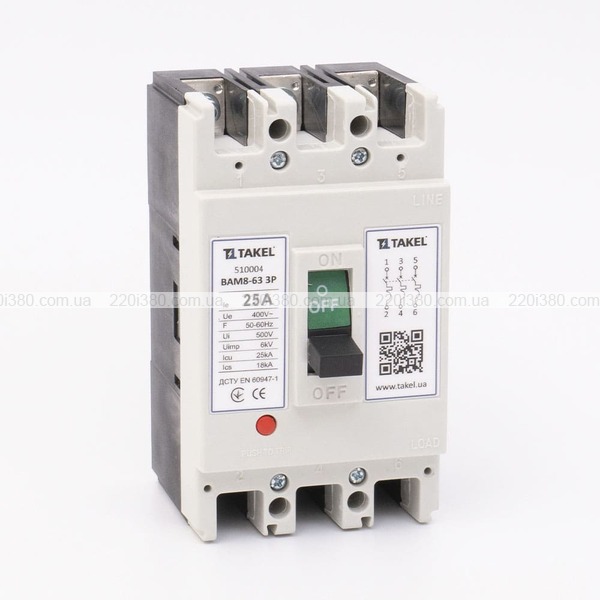 Вимикач автоматичний силовий ВАМ8-63 3Р 25А TAKEL