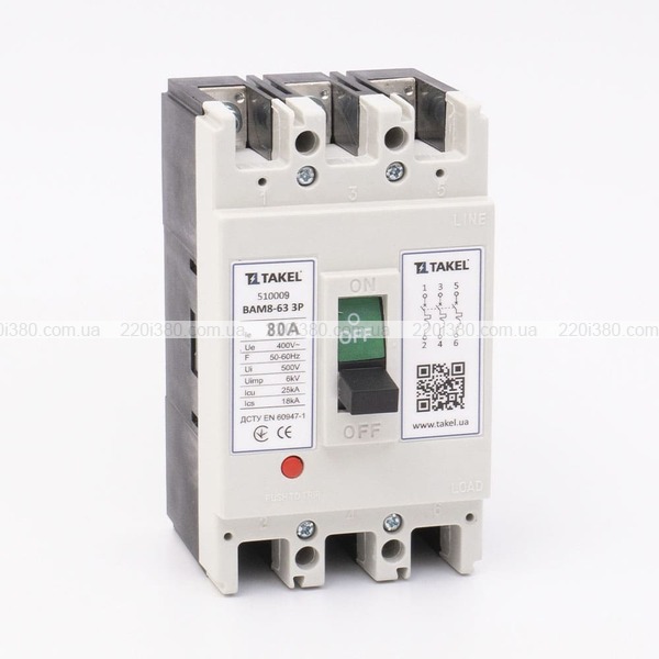 Вимикач автоматичний силовий ВАМ8-63 3Р 80А TAKEL