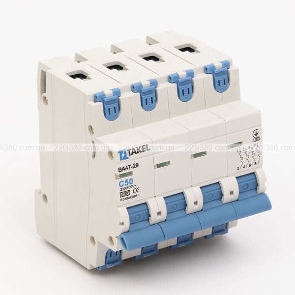 | Найменування скорочене: | ВА47-29-С 4Р 4.5кА 50А |