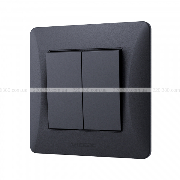 Вимикач двоклавішний чорний графіт VIDEX BINERA