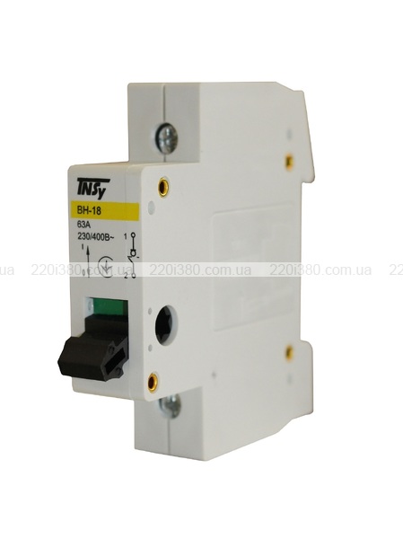 Вимикач навантаження ВН-18 1р 63А "1-0" - призначений для комутації змішаних активних та індуктивних навантажень у ланцюгах змінного струму напругою до 400В частотою 50 Гц.