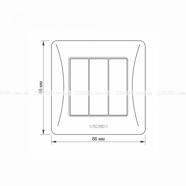 Вимикач трьохклавішний чорний графіт VIDEX BINERA