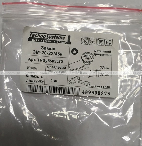 Замок ЗМ-20-22/45к з ключем, металевий (тригранний) TNSy