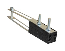 - затискач кріпиться на гаках опор за допомогою єдиного болта М12 (що забезпечує надійне кріплення затиску) і гайки, що самоконтриться;